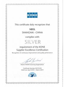 通力銀牌卓越供應(yīng)商(2018-2019)