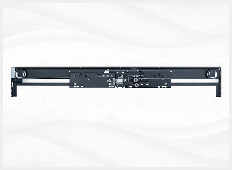 Using self-weight door-closing mode, the self-weight and guide rod are placed in the inner side of door panel, for glass panel, the weight drop is beside the door panel