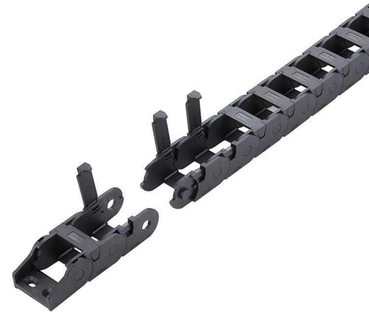 鋼鋁拖鏈適合于使用在往復(fù)運(yùn)動(dòng)的場合,能夠?qū)?nèi)置的電纜、油管、氣管、水管等起到牽引和保護(hù)的作用。拖鏈的每一節(jié)都能打開,便于安裝和維修。運(yùn)動(dòng)時(shí)噪音低、耐磨,可高速運(yùn)動(dòng)。