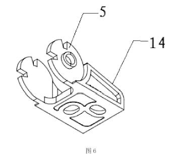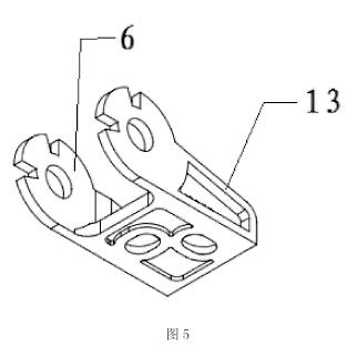 [0026]該工程拖鏈還包括兩個端部拖鏈單元I分別為第一端部拖鏈單元13和第二端部拖鏈單元14,第一端部拖鏈單元13上設有用于與拖鏈單元I的卡接部5連接的卡槽6,第二端部拖鏈單元14上設有用于與拖鏈單元I的卡槽6連接的卡接部5。其中,端部拖鏈單元I與拖鏈單元I的連接原理相同,第一端部拖鏈單元13和第二端部拖鏈單元14與拖鏈單元I能夠實現(xiàn)自由轉動。