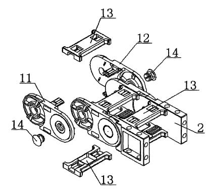 本實(shí)用新型公開了一種新型加強(qiáng)型工程拖鏈,包括鏈節(jié);所述鏈節(jié)包括相同設(shè)置的左側(cè)主體板和右側(cè)主體板以及連接橫桿和警示裝飾圍;所述左側(cè)主體板設(shè)有左連接塊、左通孔、左滑塊、左滑槽和左環(huán)形凸臺(tái);所述左滑塊和左滑槽的位置相對(duì)應(yīng);所述左連接塊設(shè)有左凸臺(tái)和左加強(qiáng)筋;所述連接橫桿設(shè)有定位槽,且數(shù)量為兩個(gè);所述左側(cè)主體板和右側(cè)主體板的上F兩端均通過連接橫桿固定連接;所述左凸臺(tái)和右凸臺(tái)分別固定在兩個(gè)定位槽內(nèi);所述左滑塊與另一個(gè)相鄰的左側(cè)主體板上的滑槽左滑動(dòng)連接,并通過警示裝飾國(guó)固定;該新型加強(qiáng)型拖鏈結(jié)構(gòu)簡(jiǎn)單,加工方便;加強(qiáng)筋以及環(huán)形凸臺(tái)的結(jié)構(gòu),加強(qiáng)連接處的強(qiáng)度,不易損壞,延長(zhǎng)使用壽命。